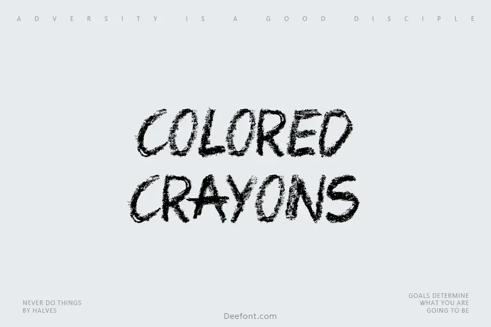 Colored Crayons is a distinctive display script font featuring bold, eroded characters that mimic the natural texture of hand-drawn crayon strokes. Each letterform combines playful irregularity with artistic authenticity, making it perfect for horror movie headlines, gaming titles, Halloween-themed graphics, punk and metal album covers, creative posters, and festive banners. The font’s rough-hewn aesthetic adds character and visual impact to any project demanding personality and an organic, hand-crafted appearance.