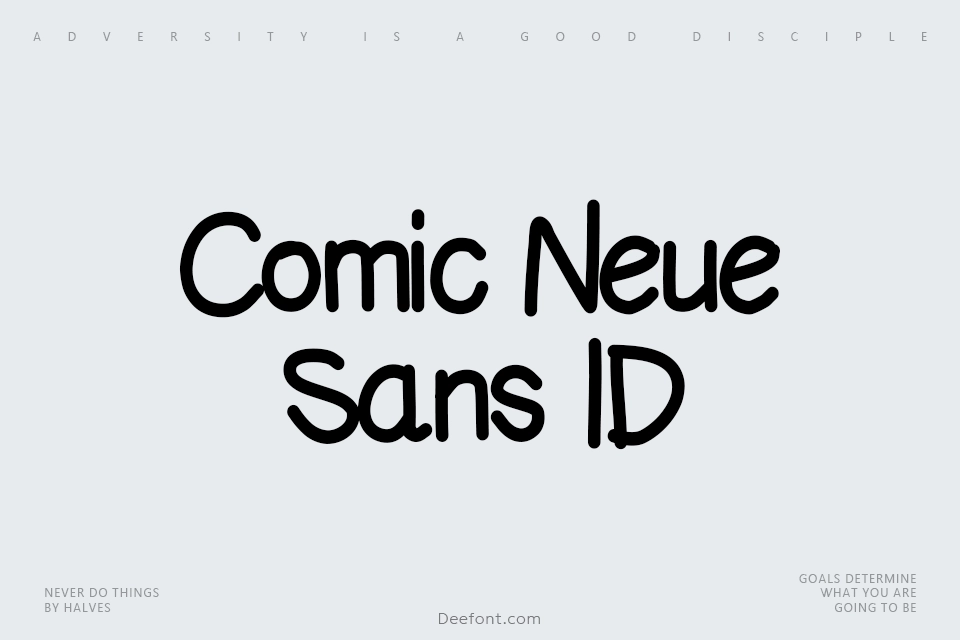 Comic Neue Sans ID is a playful and casual sans-serif typeface inspired by Comic Sans MS, redesigned to offer improved character forms while maintaining the lighthearted aesthetic. Created in 2013 using iFontMakerM, this font features a friendly, hand-drawn style perfect for cartoon, comic, and casual design projects. With 311 glyphs supporting multiple languages including accented characters, it brings charm and personality to any creative work, making it ideal for informal designs, children’s content, and whimsical typography applications.