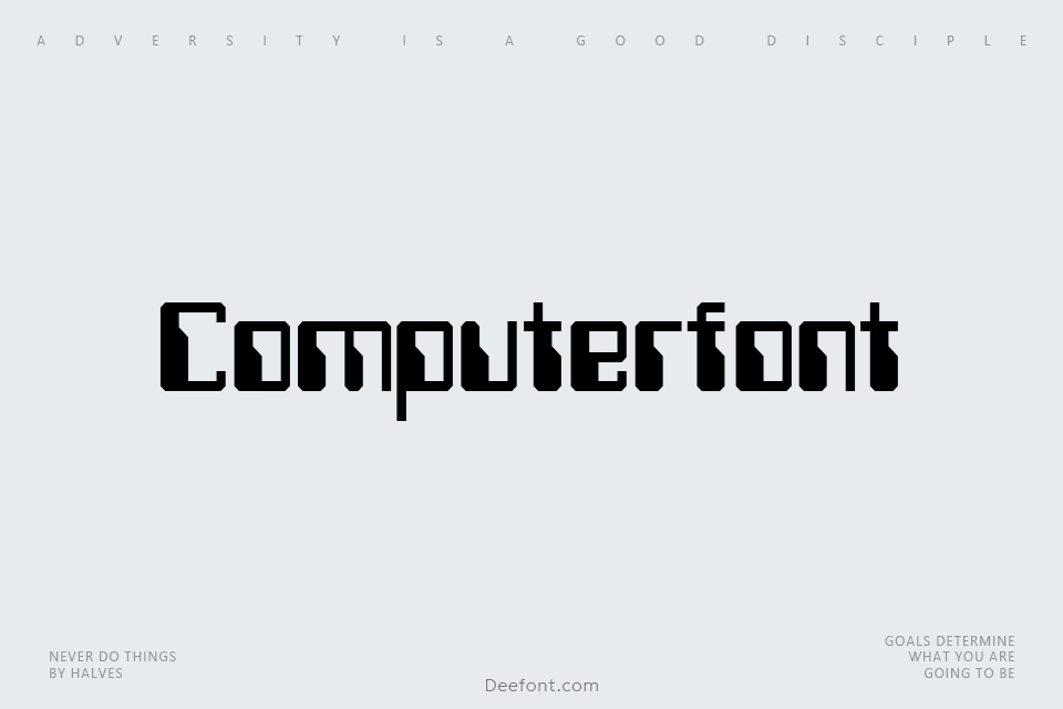 Computerfont is a distinctive techno and LCD-style display typeface with a clean, digital aesthetic designed for modern creative projects. This geometric font features a futuristic appearance with consistent stroke widths and minimalist design principles, making it ideal for tech-oriented branding, digital interfaces, and eye-catching headlines. With its 194 carefully crafted characters and crisp letterforms, Computerfont delivers exceptional legibility while maintaining contemporary appeal.