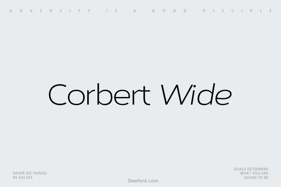 Corbert Wide Font is a geometric sans serif typeface influenced by Bauhaus and the early modernist era. Its precise shapes are optically adjusted to create a clear, natural typeface with excellent legibility, making it ideal for headlines, banners, branding, and a wide range of display applications. With nine weights, matching italics, and extensive language support, Corbert Wide offers designers a versatile and impactful font system for modern creative needs.