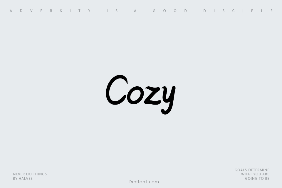 Cozy is an elegant script font crafted by GORES Communitype Studio, designed to bring warmth and comfort to your creative projects. This versatile typeface combines flowing letterforms with charming character, making it ideal for invitations, greeting cards, branding, and decorative applications. With its smooth, rounded curves and friendly aesthetic, Cozy adds a personal touch to any design. The font supports multiple languages and offers a complete character set, though it is intended for personal use, requiring a commercial license for business applications.