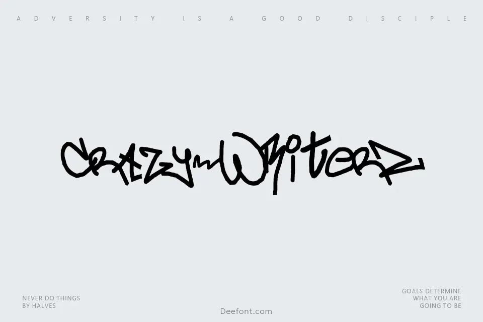 crAzy-WRiterZ is a bold and energetic graffiti-style script font that captures the raw, rebellious spirit of street art. With its jagged, hand-drawn characters and dynamic letterforms, this typeface brings an authentic urban edge to creative projects. Perfect for headlines, posters, and eye-catching designs that demand attention and personality. The font’s expressive nature makes it ideal for music covers, street art-inspired graphics, and contemporary creative work that celebrates artistic freedom.