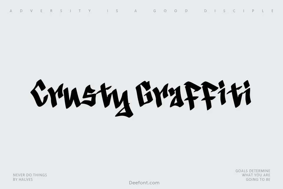 Crusty Graffiti is a distinctive graffiti script font designed for creative street-style typography and urban branding. This typeface features authentic tag-inspired letterforms with a rough, textured aesthetic, making it ideal for street art, murals, metal concerts, rock music, business branding, logos, banners, posters, stickers, and creative design projects. With comprehensive character support including uppercase, lowercase, numerals, punctuation marks, and multilingual support, it delivers bold visual impact for contemporary creative applications.