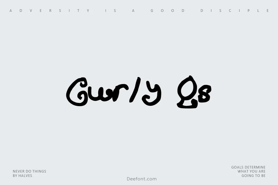 Curly Qs is a playful and decorative font characterized by flowing, whimsical letterforms with elegant curved strokes. This charming typeface delivers a distinctive curly aesthetic perfect for creative projects, greeting cards, invitations, and decorative typography applications. The font’s elaborate flourishes and ornamental details make it an excellent choice for designs requiring a feminine, elegant, and sophisticated appearance.