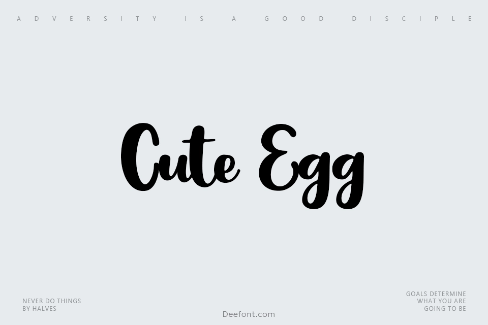 Cute Egg is a fun and round lettered script typeface designed for creative projects requiring a playful touch. This charming font is ideal for cartoon-related designs, children’s games, elegant invitations, logos, and branding applications. With its versatile script characteristics and smooth handwritten style, Cute Egg brings delightful personality to any design work, whether for display purposes or decorative typography needs.