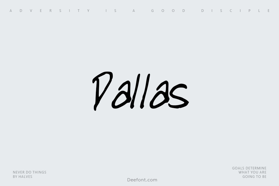 Dallas is a distinctive handwritten script font created by Dallas Lucille, known for its casual elegance and expressive character. This sophisticated typeface features slightly slanted, connected letterforms that evoke the flow of natural handwriting. Perfect for creative projects including logos, branding, posters, and hand-lettered designs, Dallas combines playful personality with exceptional readability. Its charming aesthetic makes it an ideal choice for contemporary design work seeking a touch of warmth and personality.