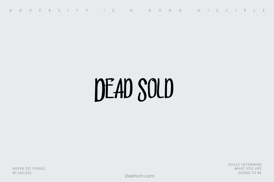 Dead Sold is a haunting handwritten script typeface that combines a distressed, imperfect aesthetic with playful yet eerie character forms. The font features 56 glyphs including uppercase letters, numerals, and punctuation, each designed with intentional roughness and irregular strokes that evoke a hand-drawn quality. The uneven baseline and weathered texture make it ideal for Halloween-themed posters, spooky movie titles, creepy party invitations, and theatrical horror designs where an authentic, slightly unsettling atmosphere is desired. The distinctive character shapes work brilliantly as display headings or decorative text elements.