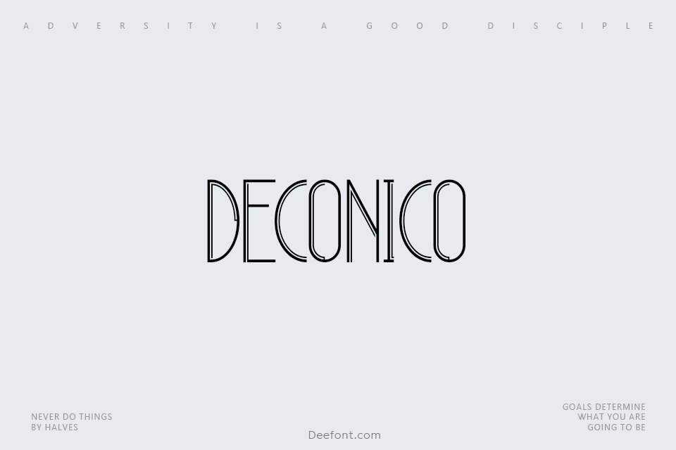 Deconico is a sophisticated Art Deco-inspired display font that captures the elegant minimalism of 1920s-1930s design. Featuring clean geometric lines and refined curves, this typeface exudes understated luxury perfect for logos, headlines, and branding projects requiring refined simplicity. Its balanced proportions and structured letterforms ensure effortless readability while maintaining timeless sophistication, making it ideal for luxury fashion, upscale hospitality, and retro-themed designs.