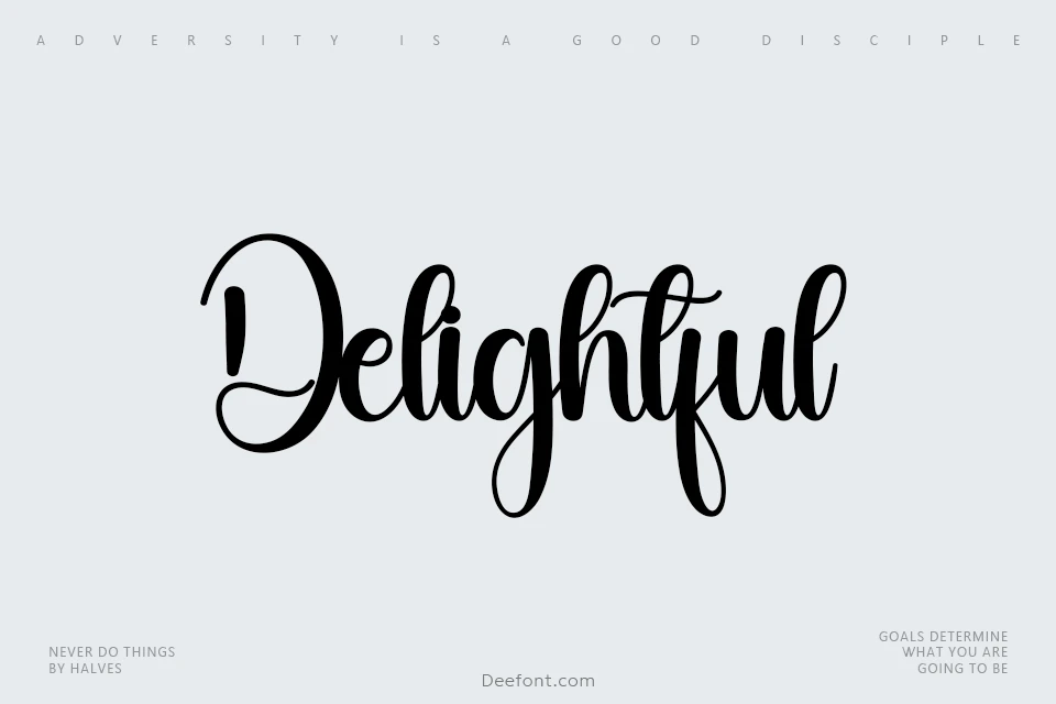 Delightful Script Font is a stylish and neat handwritten font that exudes sophistication and charm. With its flowing lines and balanced strokes, Delightful brings an air of elegance to any project. Perfect for invitations, logos, and branding materials, this font adds a touch of grace and refinement to your designs. It is ideal for wall displays, wedding invitations, social media posts, advertisements, product packaging, labels, photography, watermarks, stationery, and any project that requires tasteful handwriting.