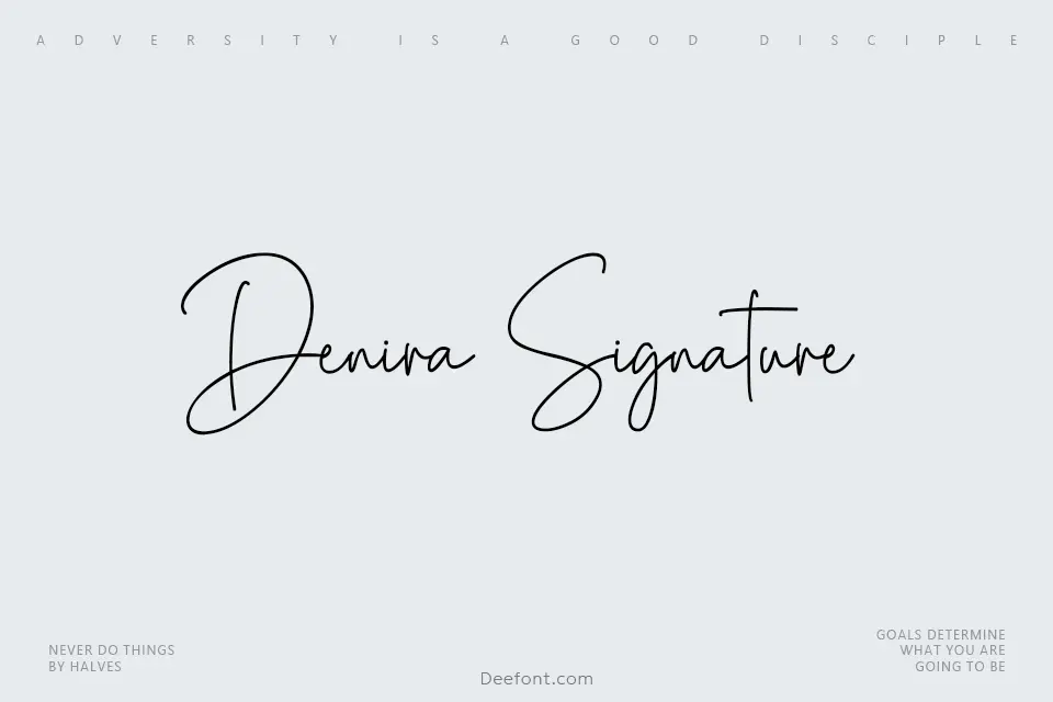 Denira Signature is a delightful handwritten font characterized by flowing cursive strokes, light elegant letterforms, and organic handcrafted aesthetics. Perfect for wedding invitations, greeting cards, greeting cards, packaging design, branding, and feminine projects, this signature-style typeface delivers sophisticated charm with authentic calligraphy appeal. Ideal for logos, social media content, stationery, and posters requiring personality and refined elegance.