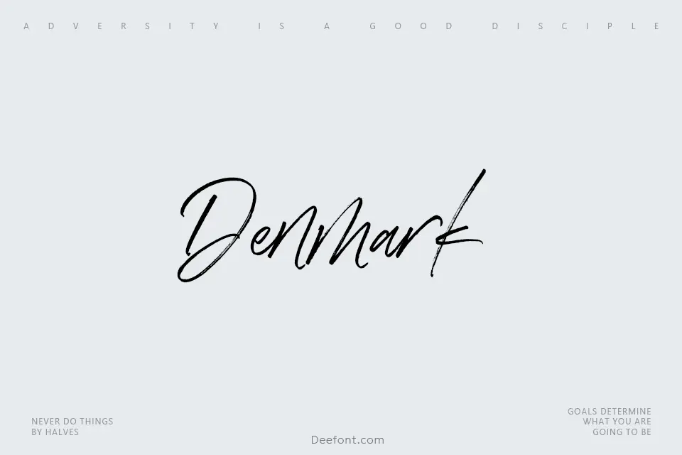 The Denmark font, designed by Letteralle Studios, is a captivating brush script that blends modern elegance with a natural, handwritten vibe. Its dynamic strokes and authentic ink texture make it ideal for wedding invitations, stylish logos, and eye-catching posters. This expressive typeface adds a personal, artistic touch to any design project.