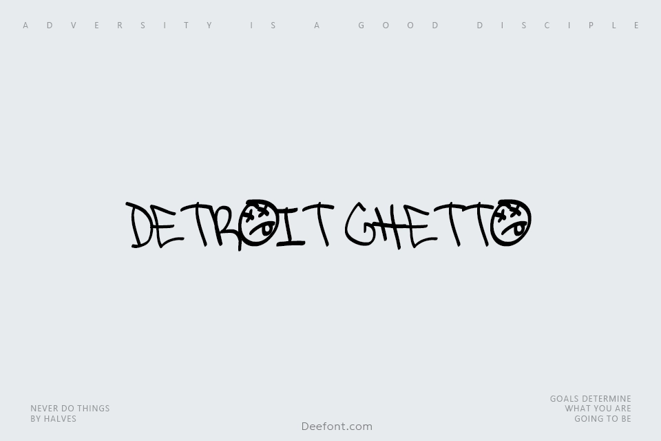 Detroit Ghetto is a distinctive graffiti-inspired script font created after exploring Detroit’s urban landscape. This shareware typeface features bold, raw characters with dynamic letterforms reminiscent of street art and urban expression. Containing 236 glyphs and supporting multiple languages, the font captures the essence of Detroit’s gritty neighborhoods and street culture. Its expressive style makes it ideal for creative projects seeking an edgy, contemporary aesthetic that reflects urban authenticity and artistic rebellion.