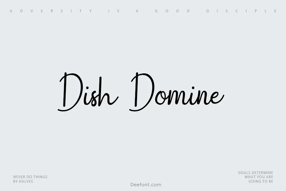 Dish Domine is a modern, bold handwritten script font defined by smooth, flowing curves and sophisticated letterforms. Featuring elegant characters with soft strokes and readable design, this typeface exudes luxury and contemporary charm, making it ideal for fashion branding, editorial design, poster headlines, luxury product packaging, logo creation, and feminine signage. Its flowing signature-style appearance brings personality and refinement to any creative project.