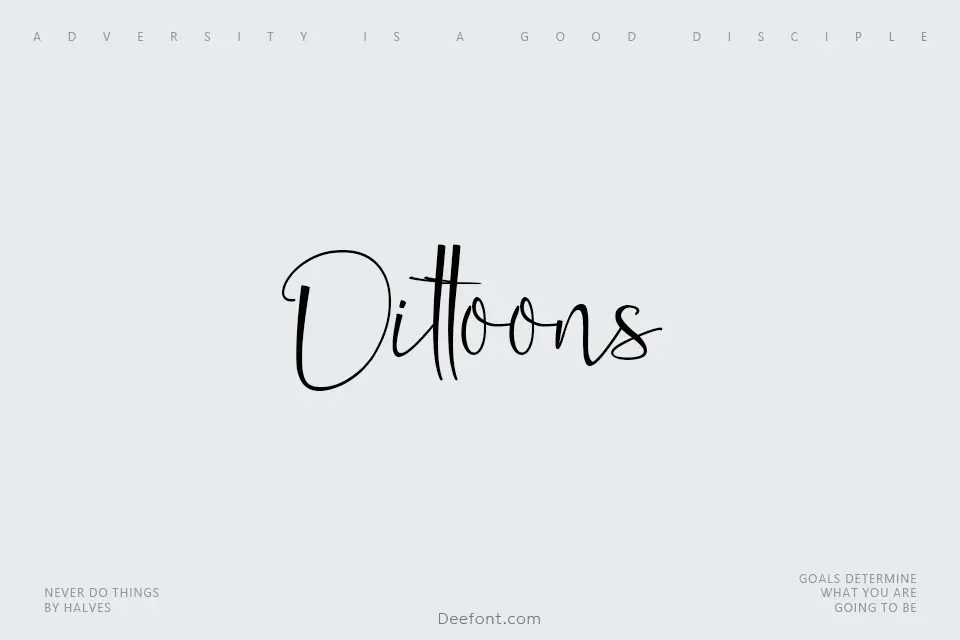 Dittoons Font is a bouncy handwritten script with rounded strokes, uneven baseline and cartoon charm, ideal for playful titles that need personality. Its casual, doodle-like letters work beautifully for kids posters, YouTube thumbnails, logos, packaging, stickers and greeting cards, especially whenever a lighthearted, friendly mood is required.
