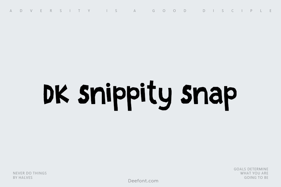 DK Snippity Snap is a playful and whimsical display font created by Hanoded. This demo version features charming, hand-drawn characteristics with organic curves and bold lines, perfect for adding personality to creative projects. The font bursts with energy and playfulness, making it ideal for posters, logos, children’s designs, and fun invitations. Its unique hand-crafted aesthetic combines modern sensibilities with creative flair, ensuring both legibility and visual appeal for any design that needs a touch of excitement and whimsy.