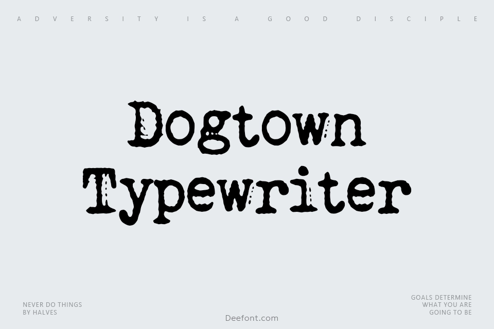 Dogtown Typewriter is a gritty, vintage-inspired typeface that captures the nostalgic charm of a well-loved typewriter. With slightly uneven, worn characters, this monospaced font evokes authentic urban aesthetics and raw, rebellious style. Perfect for logos, posters, book covers, and projects requiring retro appeal, the font combines classic typewriter character with contemporary design sensibilities for distinctive, eye-catching typography.