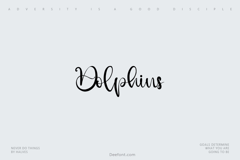 Dolphins is a modern script typeface designed by Staircase Studio, featuring elegant lettering and flowing curves perfect for creative projects including logo design, branding, digital lettering, apparel, posters, and advertising. With 248 glyphs and comprehensive character support, this versatile font brings sophisticated charm to any typographic application requiring decorative script styling and contemporary flair.