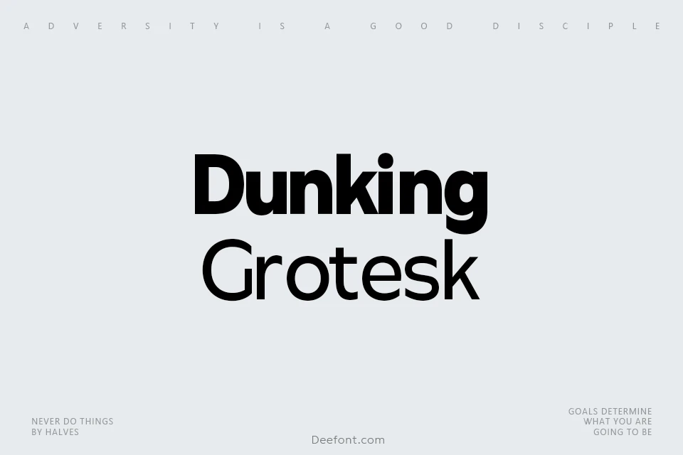 Dunking Grotesk Font is a modern sans serif font family that blends classic geometric forms with subtle humanistic touches. Designed to offer a fresh, clean, and supportive impression, it is ideal for a wide range of creative and professional projects, providing both versatility and a contemporary aesthetic.