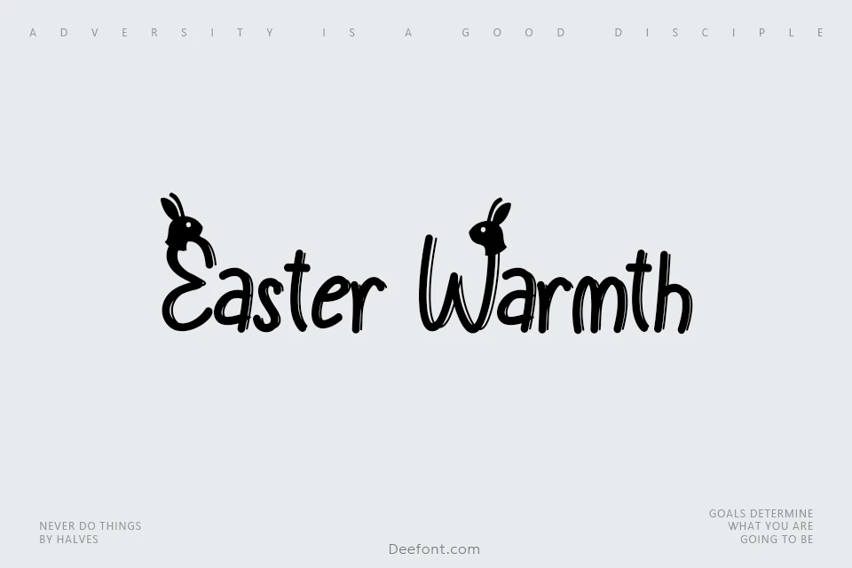 Easter Warmth Display Font is a beautiful light display font with a unique feel and a stunning impact. Its playful, charming style makes it perfect for festive and creative projects, especially those centered around Easter themes. This font will add a luxury spark to any design project you wish to create, making your work stand out with its delightful and whimsical touch.