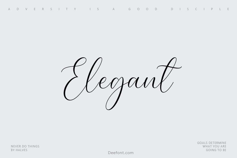 Elegant is a sophisticated script and calligraphy typeface that combines flowing, organic letterforms with refined elegance. This versatile font features 222 glyphs and delivers beautiful handwritten characteristics perfect for wedding invitations, luxury branding, greeting cards, and creative projects. With its smooth curves and graceful design, Elegant adds a touch of premium sophistication to any typographic application, making it an ideal choice for designers seeking refined calligraphic aesthetics.
