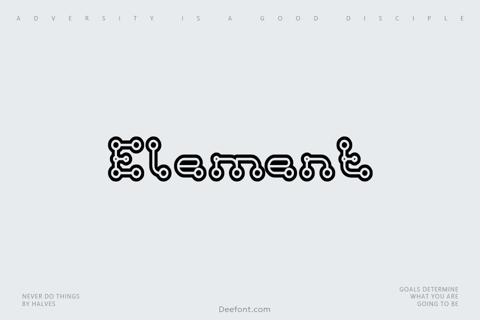Element is a decorative and fancy font created by weknow Design, featuring symbols, lowercase letters, and numbers. This display typeface combines geometric elements with contemporary design, making it ideal for creative projects, headings, posters, and eye-catching typography. With its distinctive character set and unique decorative flair, Element adds visual interest and personality to any design work requiring a bold, artistic aesthetic.