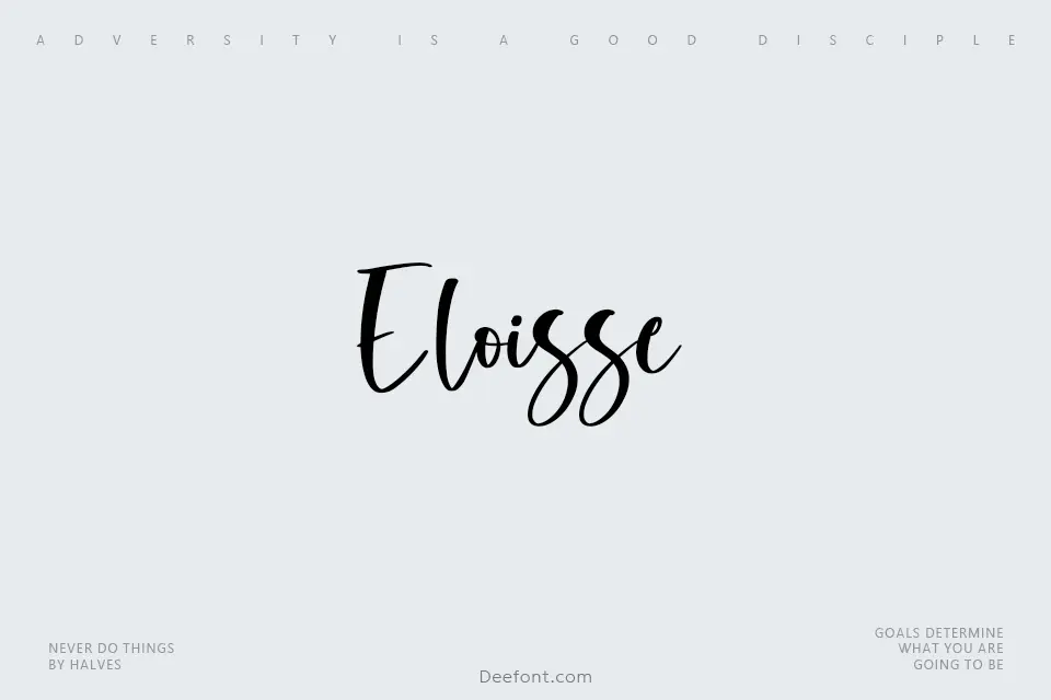 Eloisse Font is an elegant handwritten script with smooth curves, delicate contrast and natural ligatures that feel like refined pen strokes. Its flowing characters add warmth and sophistication to wedding invitations, logos, quotes, packaging and social media, ideal whenever you need a romantic, feminine signature look.