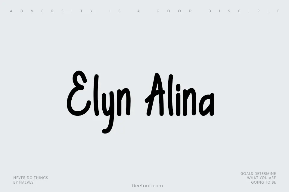 Elyn Alina Font is a beautifully crafted handwritten script that exudes warmth and elegance without compromising clarity. With flowing strokes and a modern spirit, this typeface seamlessly blends personal authenticity with contemporary design aesthetics. Its simple yet refined letterforms make it ideal for creating sophisticated invitations, wedding stationery, greeting cards, posters, branding materials, and display applications. The font’s intuitive readability and charm make it a preferred choice for designers seeking to add a human touch to their creative projects while maintaining a professional appearance. Perfect for decorative headlines, signature-style typography, and any project requiring a personal, elegant handwritten quality.