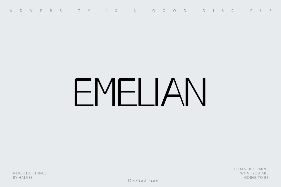 Emelian is a clean and modern sans serif font designed by Nendi Emelia. This contemporary typeface features semi-condensed proportions and semi-light weight, making it perfect for professional branding, editorial layouts, and minimalist design projects. With its sleek lines and refined aesthetic, Emelian brings sophisticated elegance to logos, websites, and creative applications. The font supports multiple languages and offers efficient space utilization while maintaining excellent legibility across various sizes and applications.