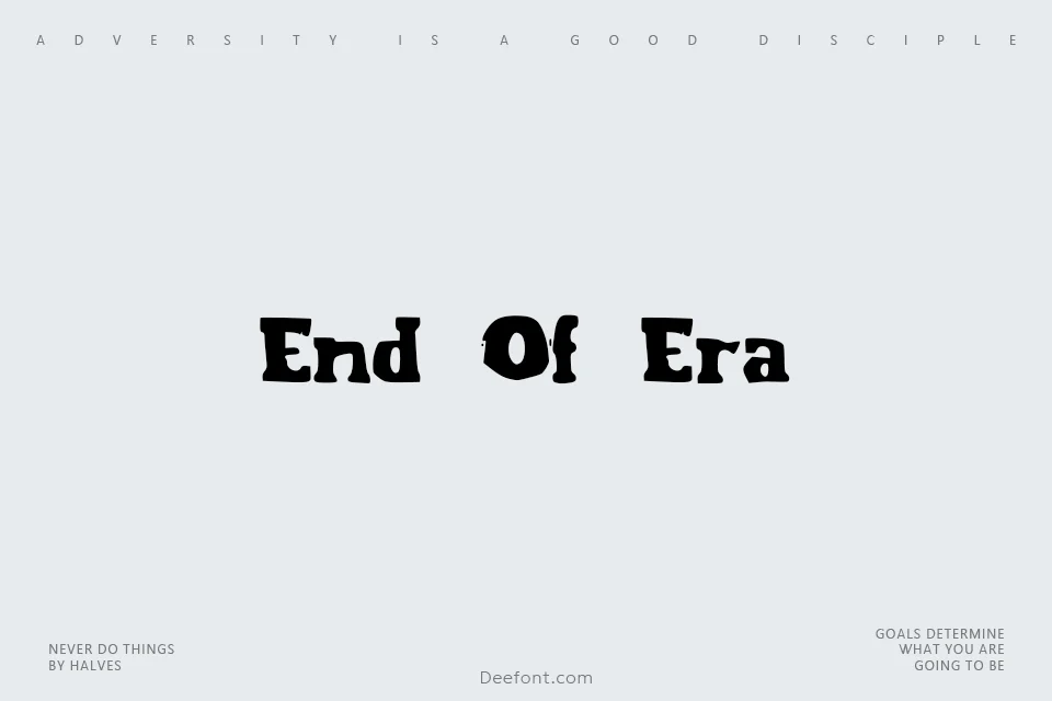 The End Of Era font is a distinctive display typeface that captures a sense of vintage decay and artistic erosion. Created by designer Leonard Posavec, this charming eroded typeface brings character and depth to creative typography projects. With its weathered appearance and distressed styling, the font is ideal for vintage-inspired designs, retro branding, and artistic posters that require visual impact and nostalgic appeal.