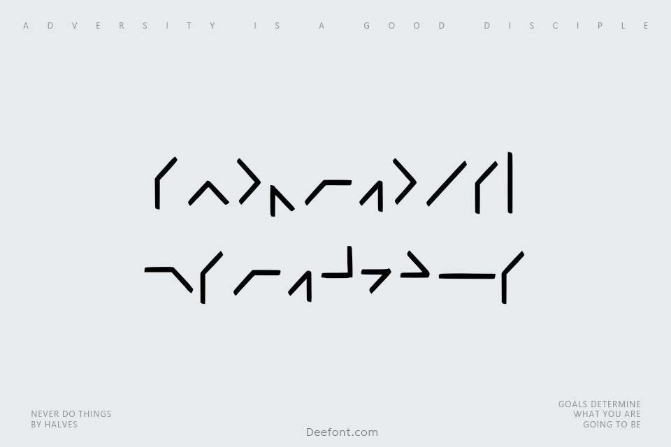 Enigmailed Semaphore is a unique dingbat font featuring clean semaphore signal lines without decorative flags. This creative typeface uses simple linear designs to represent naval signaling characters, making it perfect for puzzle enthusiasts and creative designers. The font contains 66 glyphs of communicative symbols ideal for playful typography and distinctive design projects.