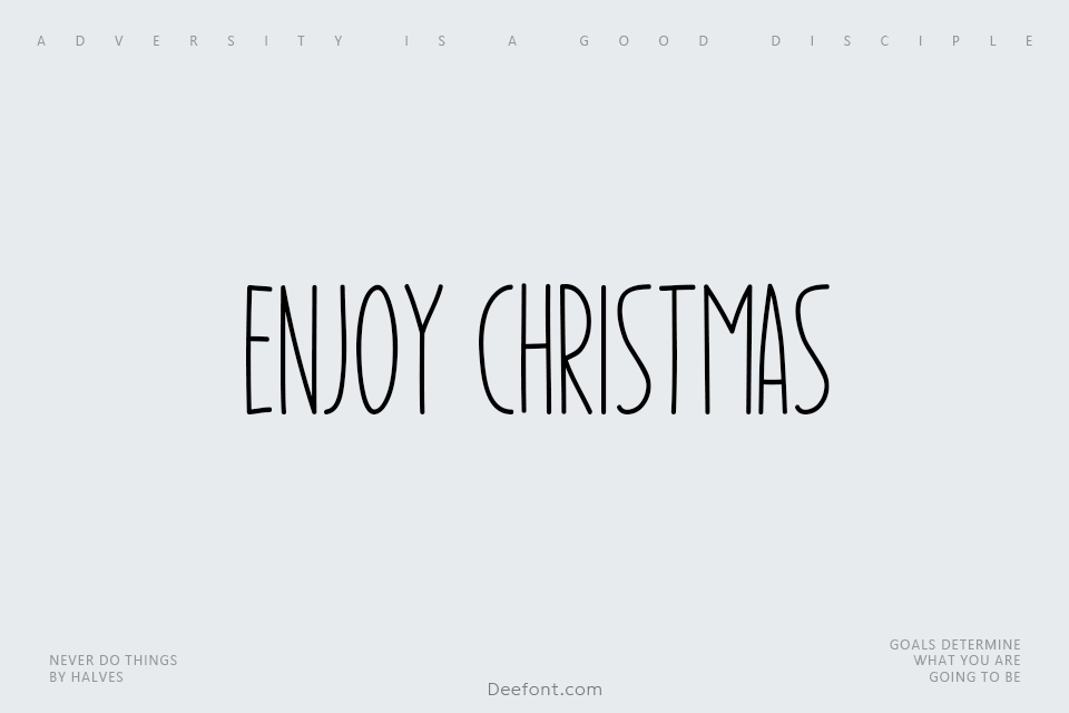 Enjoy Christmas is a festive handwritten font designed with cheerful charm and holiday spirit. This clean, tall lettered typeface captures the essence of seasonal celebrations with its playful yet legible character design. Perfect for Christmas cards, festive social media posts, gift tags, and holiday-themed marketing materials, this font brings warmth and authenticity to your creative projects. Its handcrafted aesthetic conveys a personal touch ideal for both digital and print applications seeking to celebrate the joy and nostalgia of the holiday season.