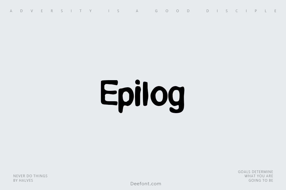 Epilog is a distinctive display font characterized by its bold, rounded letterforms with a pleasant hand-drawn quality. The typeface features smooth and heavy letters, delivering a friendly yet firm appearance that combines playful design with substantial readability. Its unique aesthetic makes it perfect for headlines, decorative purposes, and creative projects that require a distinctive visual presence with approachable personality.