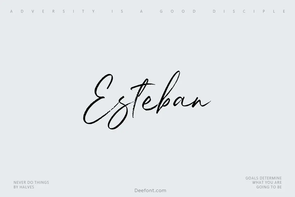 Esteban Font is an elegant handwritten script typeface featuring fluid, dancing baseline strokes with brush-like calligraphic qualities. Designed with moderate contrast and variable strokes that create a lively, organic feel, this typeface excels in posters, invitations, branding projects, and decorative typography. The font’s spontaneous pen-stroke characteristics and 319 glyphs make it suitable for editorial designs, wedding stationery, product packaging, and creative headlines seeking a personal, artistic touch while maintaining excellent readability across digital and print media.