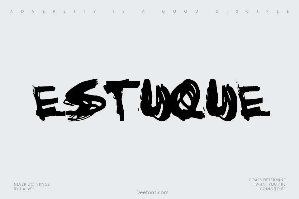 Estuque is a striking grunge-inspired display typeface characterized by its rough, distressed strokes and hand-painted aesthetic. With uneven letter thickness and jagged edges, it evokes raw energy and rebellion, making it exceptionally well-suited for edgy logos, punk posters, bold headlines, and any design demanding powerful visual impact. The scratchy, trash-style appearance delivers an authentic urban feel perfect for rebellious branding, horror movie titles, and contemporary display work.