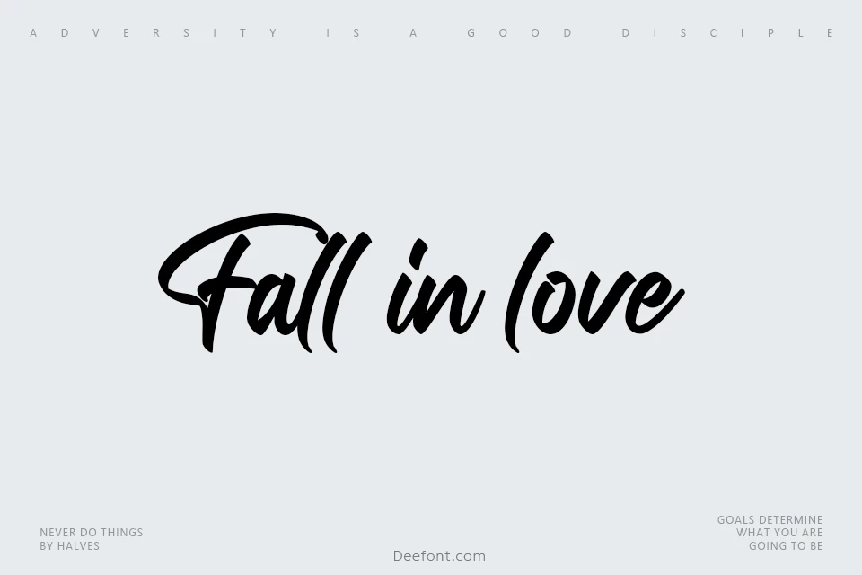 Fall in Love Script Font is a bold and stylish calligraphy script font with a modern touch, offering an authentic, charismatic, and confident choice for a wide range of design projects. Perfect for logotypes, t-shirt designs, product packaging, stylish signatures, business branding, and promotional campaigns, this font brings a romantic and elegant flair to any creative work.