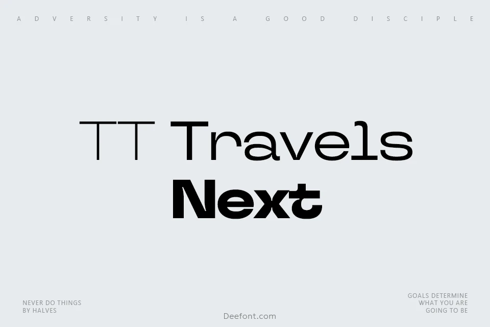 TT Travels Next Font Family is an ultra-modern, wide sans serif typeface designed to stand out with its distinctive wide proportions, minimal glyph narrowing from bold to thin, and a harmonious blend of soft and sharp forms. Featuring an exaggerated closed aperture, low contrast, and noticeable ink traps, TT Travels Next offers 21 styles-including 9 upright, 9 inclined, 2 outline styles, and a variable font with weight and slant axes. Each style supports over 190 languages and includes 26 OpenType features such as stylistic alternates, ligatures, arrows, and circled figures. Its radical, expressive character makes it perfect for both print and web layouts, branding, and dynamic display use.