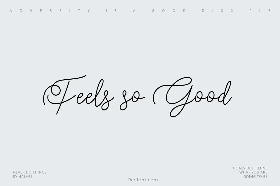 Feels so Good is a cheerful and bouncy handwritten script designed by HIRO std. With its smooth, flowing strokes and playful baseline, this font radiates authentic energy. It is an excellent choice for crafting logos, wedding invitations, social media quotes, and DIY projects, adding a charming personal touch to any creative design.