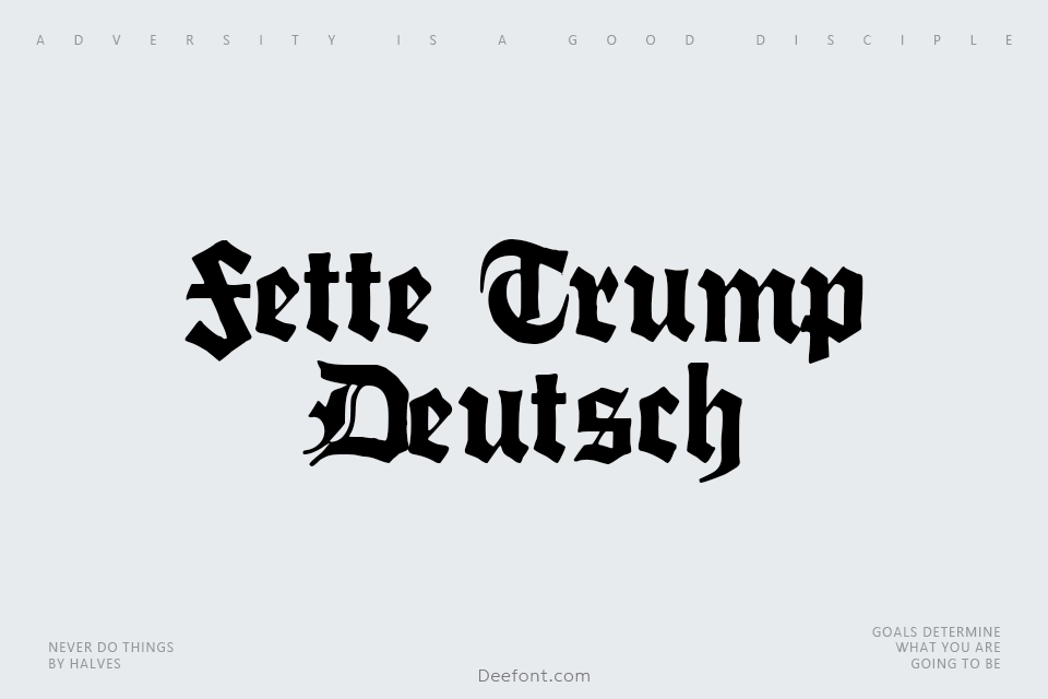 Fette Trump Deutsch is a striking blackletter typeface inspired by traditional German Fraktur design, delivering bold and medieval visual impact. Its sharp, expressive letterforms make it ideal for posters, gothic-themed branding, and vintage projects. The font stands out with its historic flourishes and ornamental style, perfect for anyone seeking authentic old-world character for both personal and professional designs.