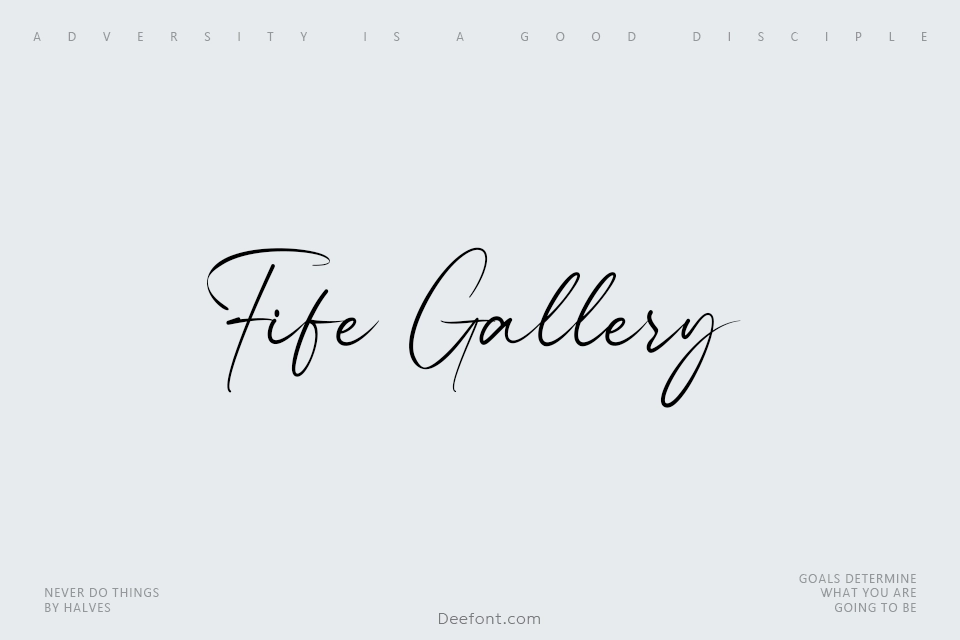 Fife Gallery is an elegant and stylish modern script font that combines handwritten charm with sophisticated letterforms. This versatile calligraphy typeface is perfect for wedding invitations, greeting cards, quotes, logos, and any design project requiring an authentic handwritten touch. The font features beautiful flowing strokes and elegant curves that bring a personal, artistic quality to your typography, making it ideal for both creative and professional applications.