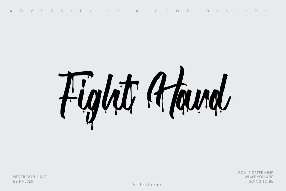 Fight Hard Font is a bold, graffiti-inspired display typeface featuring a dripping brush style with rebellious energy. This high-impact modern font combines uppercase, lowercase letters with numerals and punctuation, delivering a powerful statement perfect for branding, posters, and edgy designs. With its fluid cursive movements and dynamic stroke variations, it brings urban street-art vibes to any creative project requiring a fearless, contemporary aesthetic.