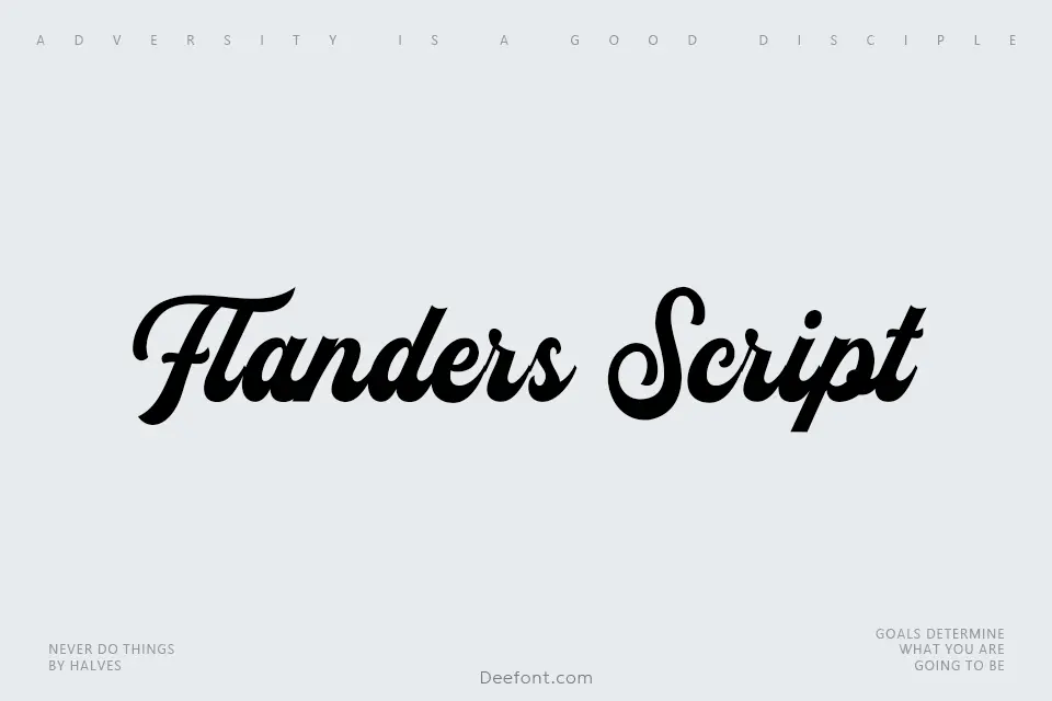 Flanders Script is a bold and energetic script typeface that blends vintage charm with contemporary confidence. Designed with strong, sweeping strokes and dynamic letterforms, this font evokes the golden age of athletic branding and retro Americana. Rich OpenType features—including ligatures, stylistic alternates, contextual alternates, and expressive swashes—allow designers to craft distinctive wordmarks, headlines, and logotypes. Its powerful visual rhythm makes Flanders Script ideal for sports team identities, product packaging, apparel graphics, vintage posters, and any project demanding character-driven typography with a nostalgic edge.