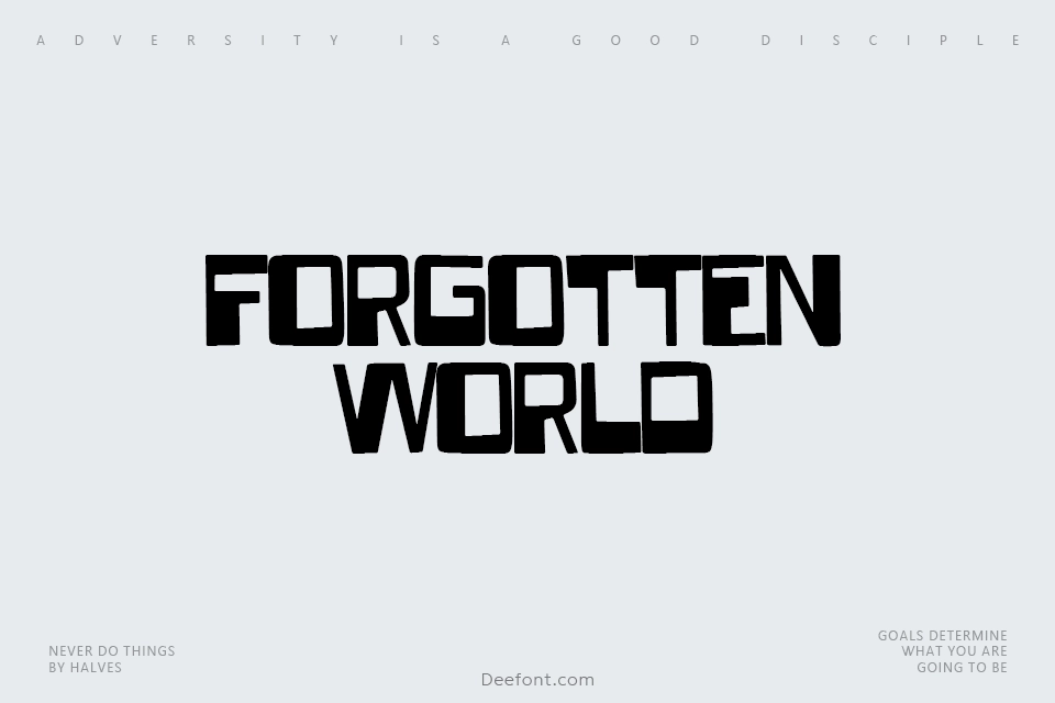 Forgotten World is a bold and futuristic techno font that brings a sci-fi aesthetic to your creative projects. Designed with sharp, angular letterforms characteristic of the cyberpunk genre, this typeface excels at conveying a sense of technological innovation and digital advancement. Perfect for headlines, branding, gaming interfaces, and high-tech design work, the font’s distinctive style makes it ideal for projects requiring a modern, forward-thinking visual impact.