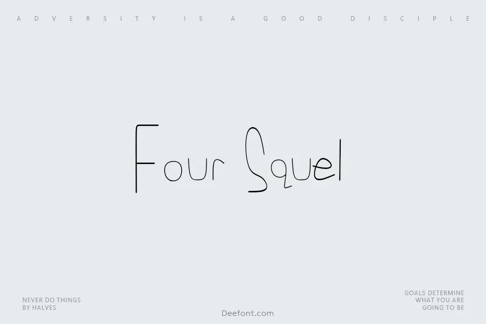 Four Squel is a delightfully bouncy and playful handwritten script font that brings spontaneous charm to any design project. With its fluid curves, organic letterforms, and energetic strokes, this typeface radiates casual elegance and youthful enthusiasm. The font’s hand-drawn aesthetic creates an authentic, personable feel perfect for eye-catching titles, festive posters, creative signage, greeting cards, and branded graphics. Its natural irregularities and flowing character make it ideal for designs requiring warmth and personality—from party invitations and event announcements to informal branding and social media graphics. The lively rhythm of Four Squel elevates headlines and short-form text with an unmistakably cheerful, contemporary voice.