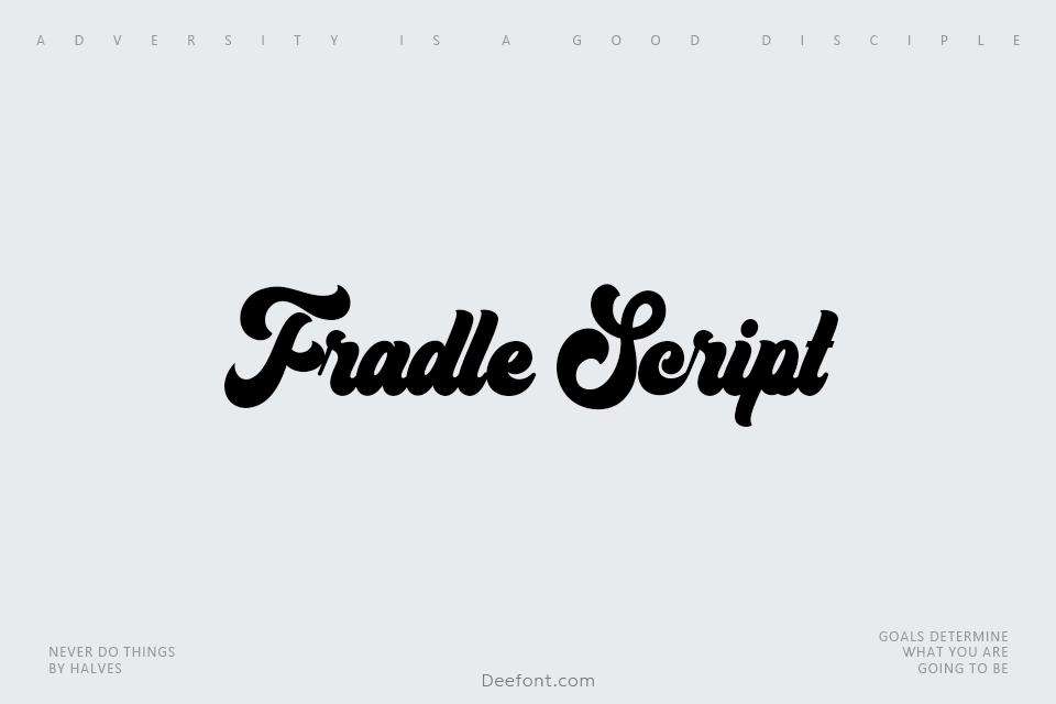 Fradle Script is a retro bold script font that captures the vintage charm and boldness of classic design eras. This typeface brings a nostalgic appeal that resonates with audiences seeking vintage authenticity combined with modern creative possibilities. With its distinctive retro character and smooth flowing lines, Fradle Script delivers a timeless aesthetic perfect for branding, poster design, and headline typography where bold personality and vintage flair are desired.