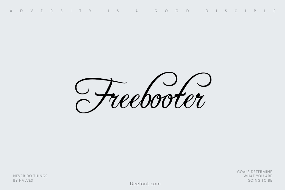 Freebooter Script is an elegant and flowing calligraphic typeface that captures the essence of classic handwriting. Designed by Apostrophic Labs for Apostrophic Labs, this versatile script font features graceful letterforms with authentic cursive characteristics, making it ideal for formal invitations, certificates, branding projects, and display typography. The font combines traditional calligraphy elements with modern usability, offering a sophisticated aesthetic suitable for both digital and print applications across various creative industries.