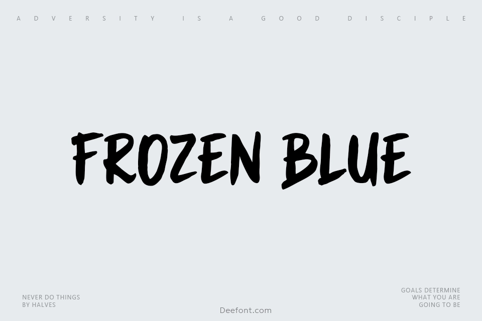 Frozen Blue is a striking bold brush script font that brings icy elegance to your creative projects. With its dynamic brushstrokes and modern aesthetic, this typeface delivers artistic flair and visual impact for headers, titles, and eye-catching designs. Perfect for adding personality to branding, posters, and contemporary typography work requiring a distinctive touch.