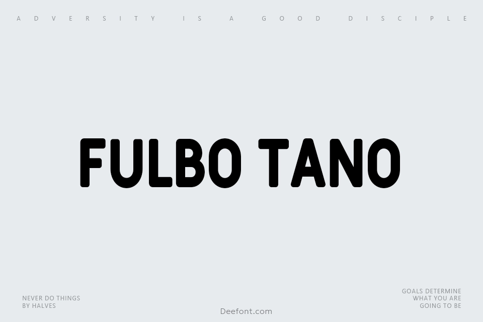 Fulbo Tano is a bold, rounded sans-serif typeface that strikes a perfect balance between elegance and expressiveness. Featuring generously wide apertures and perfectly balanced apexes, this modern font conveys approachability and warmth through its smooth, rounded bowl shapes and welcoming letterforms. With 463 glyphs supporting multilingual applications, Fulbo Tano is an ideal choice for branding, signage, packaging, and digital media where a friendly and contemporary aesthetic is desired. The font’s versatile design makes it suitable for headlines, logos, and advertising projects seeking clarity and visual impact.