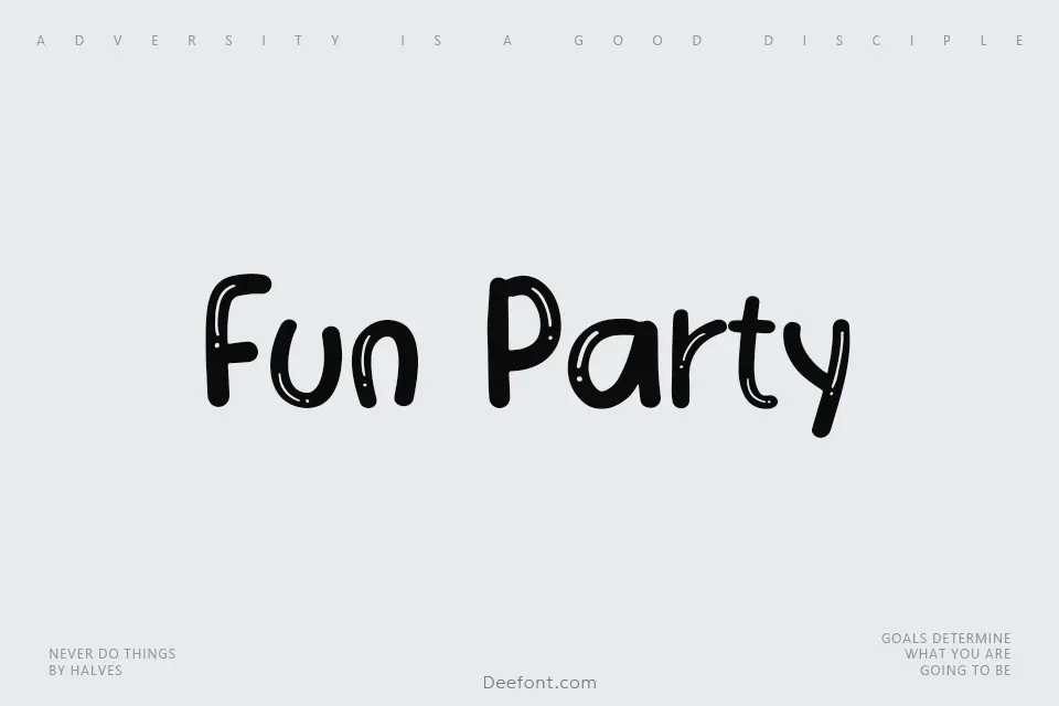 Fun Party Font is a whimsical and quirky typeface designed to bring cheerful energy to your creative projects. The font features playful letterforms that instantly create a celebratory atmosphere, making it perfect for greeting cards, logos, invitations, and stationery designs. Its distinctive style combines personality with readability, offering a delightful balance between fun and functionality. The font’s unique characteristics make it particularly suitable for projects that aim to convey joy and excitement, such as party invitations, children’s materials, or casual branding. Whether you’re designing for special events or looking to add a touch of whimsy to your work, Fun Party font delivers the perfect blend of charm and visual appeal.