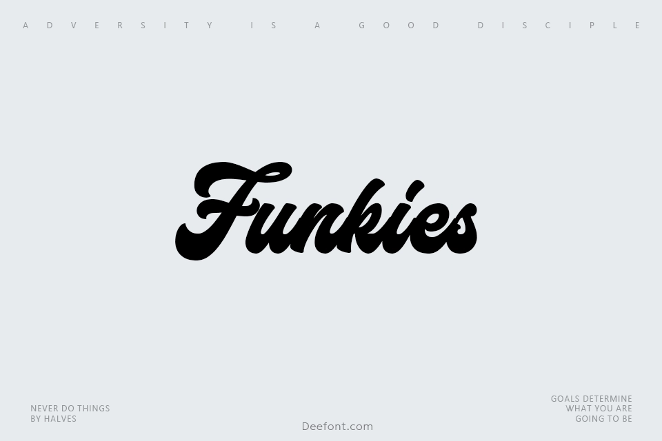 Funkies is a retro bold script font inspired by 1970s funk, disco, and rockabilly music aesthetics. Featuring fun and energetic letterforms with stylistic alternates and ligatures, this typeface excels in logotypes, posters, badges, book covers, and t-shirt designs. Perfect for projects requiring playful retro character with contemporary flair.