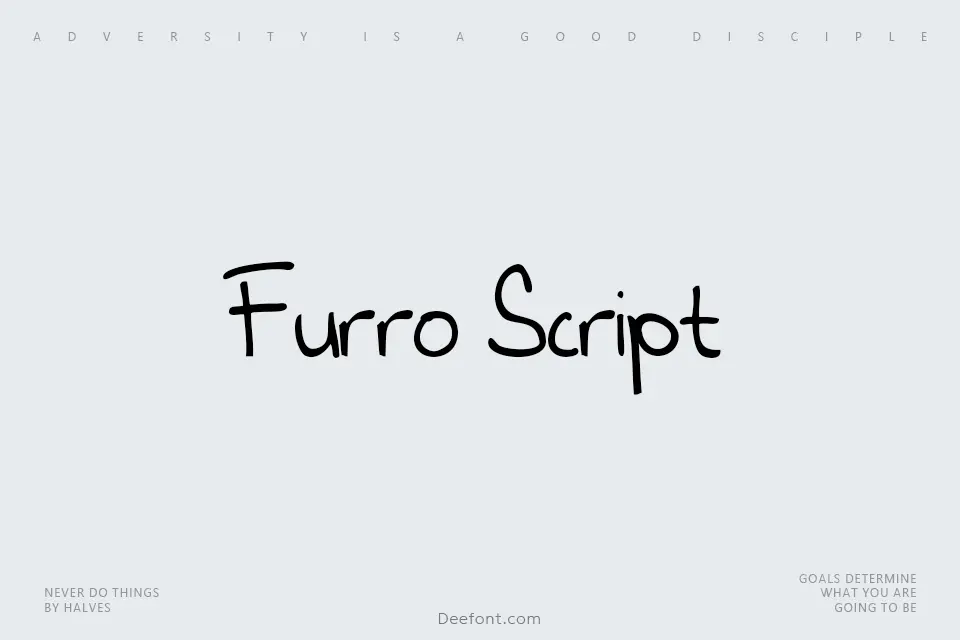 Furro Script is a dynamic handwritten script typeface featuring organic, flowing brushstrokes and natural letterforms. This font delivers authentic cursive elegance with personality-driven design suitable for poster titles, greeting cards, invitations, and display headings. Its expressive character makes it ideal for creative projects requiring warmth and human touch, from event promotion to artistic branding applications. The loose, informal quality creates visual interest while maintaining excellent readability in display contexts.